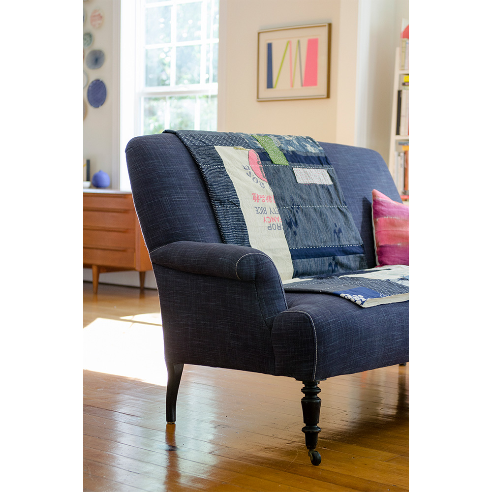 Blair explored the idea of a lighter summery weight quilt in the Boro quilt from her book. This remains a favorite and now hangs on her bedroom wall in Santa Fe, New Mexico.