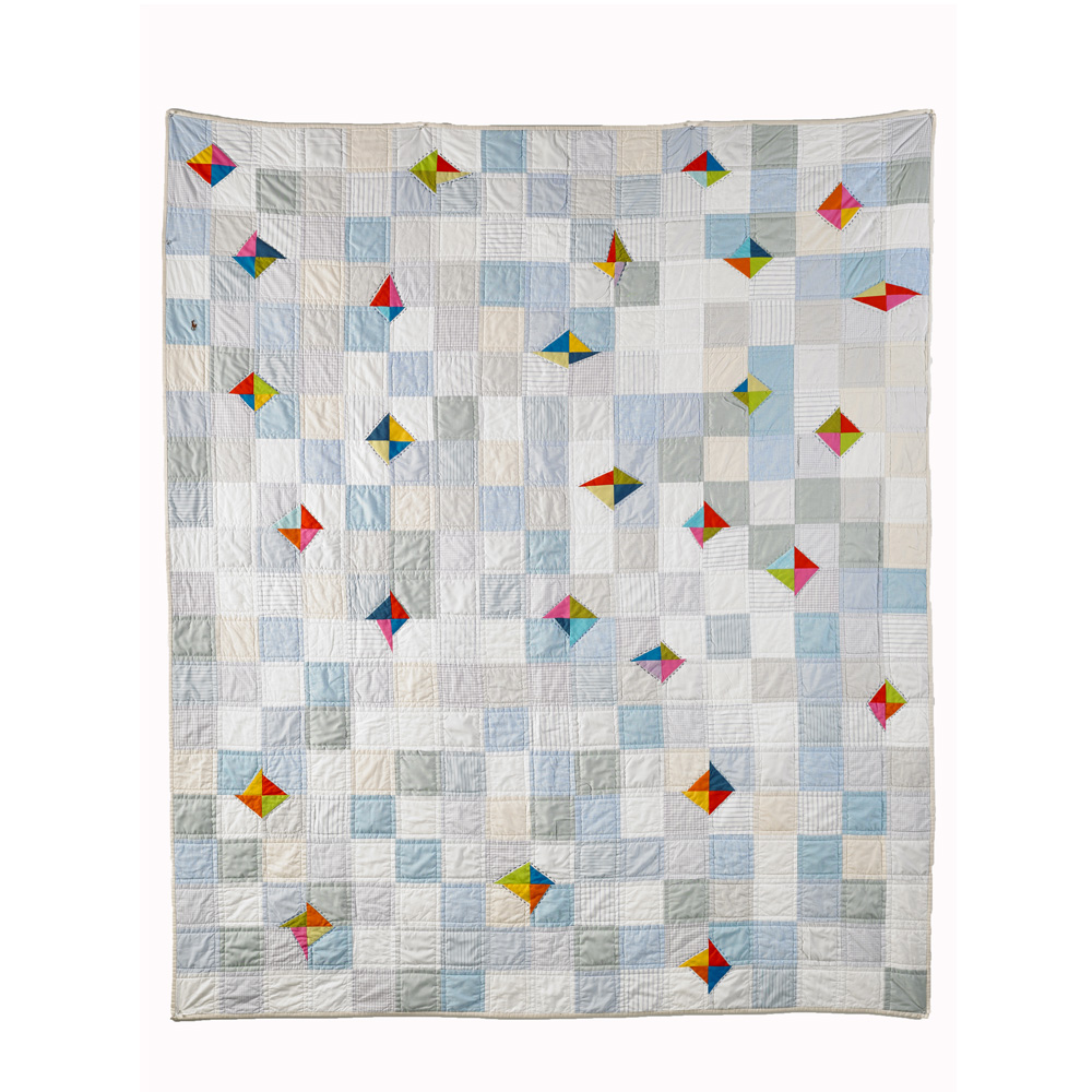 A quilt from a collection of some of my favorite things to cut up and sew–men’s dress shirts. Made after a trip to visit my in-laws who had a home of Useppa Island, near Fort Meyers, Florida. Every Tuesday late afternoon/early evening during the summer months there would be cocktails on the beach. For any and everyone who could join up and watch the sun go down.