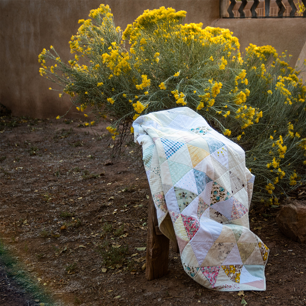 The thousand pyramids quilt block, a one block design, feels both modern and nostalgic. This quilt was first made by Blair for her book, Wise Craft Quilts, using a collection of clothing meant for donation after a closet clean out. Reusing things is such an inspiring way to quilt!