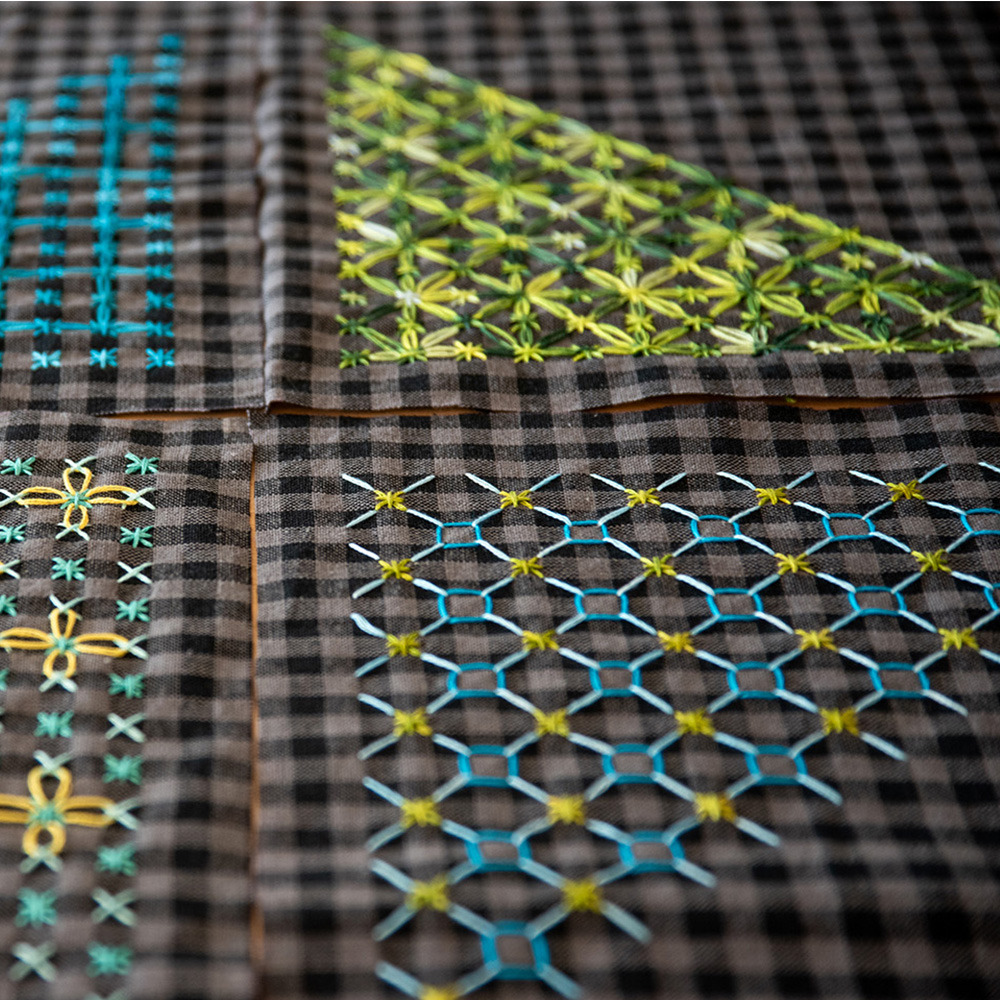 These variegated threads are so fun to stitch Chicken Scratch embroidery with! Cosmo Seasons from Lecien of Japan is a colorfast Egyptian cotton 6 strand embroidery floss.