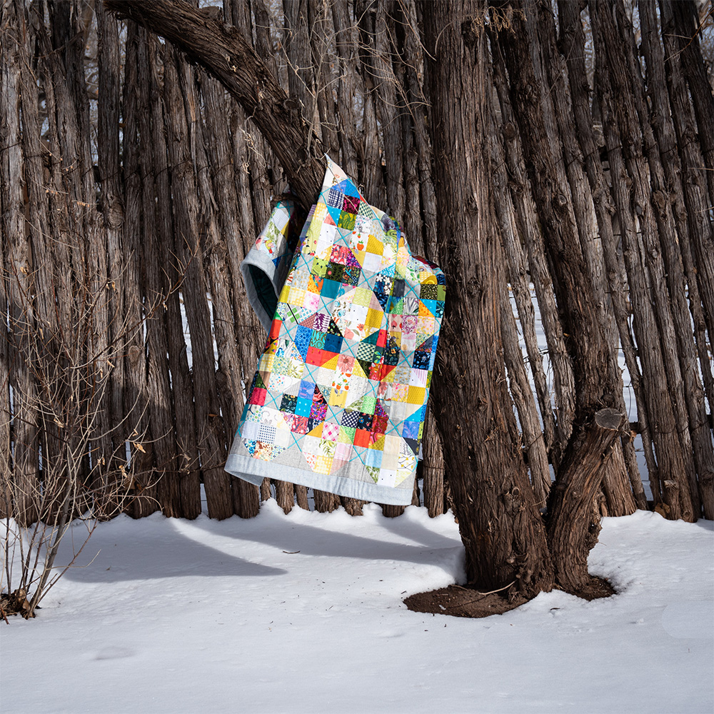 The Tufted quilt pattern is the ultimate modern scrappy quilt pattern for you if you want want to use the fabrics you already love (you have a fabric stash, right?) and turn those fabrics into a high‑impact design. Designed as a value‑study for your stash, this digital download PDF quilt pattern helps you mix prints of all styles and colors into a layered, tufted‑looking design that reads modern and graphic. For confident beginners and seasoned quilters alike.