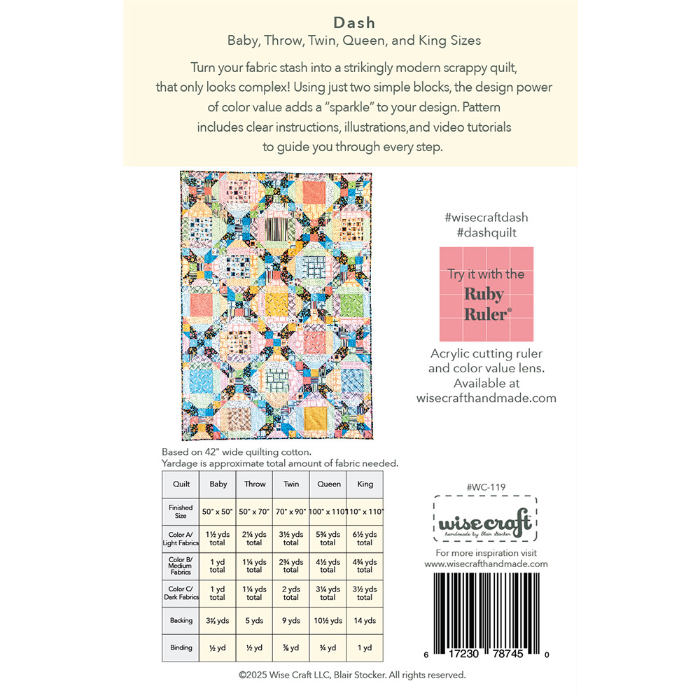 Share your Dash quilt on your favorite social media outlets using #dashqal, #wisecraftdash, #dashquilt.