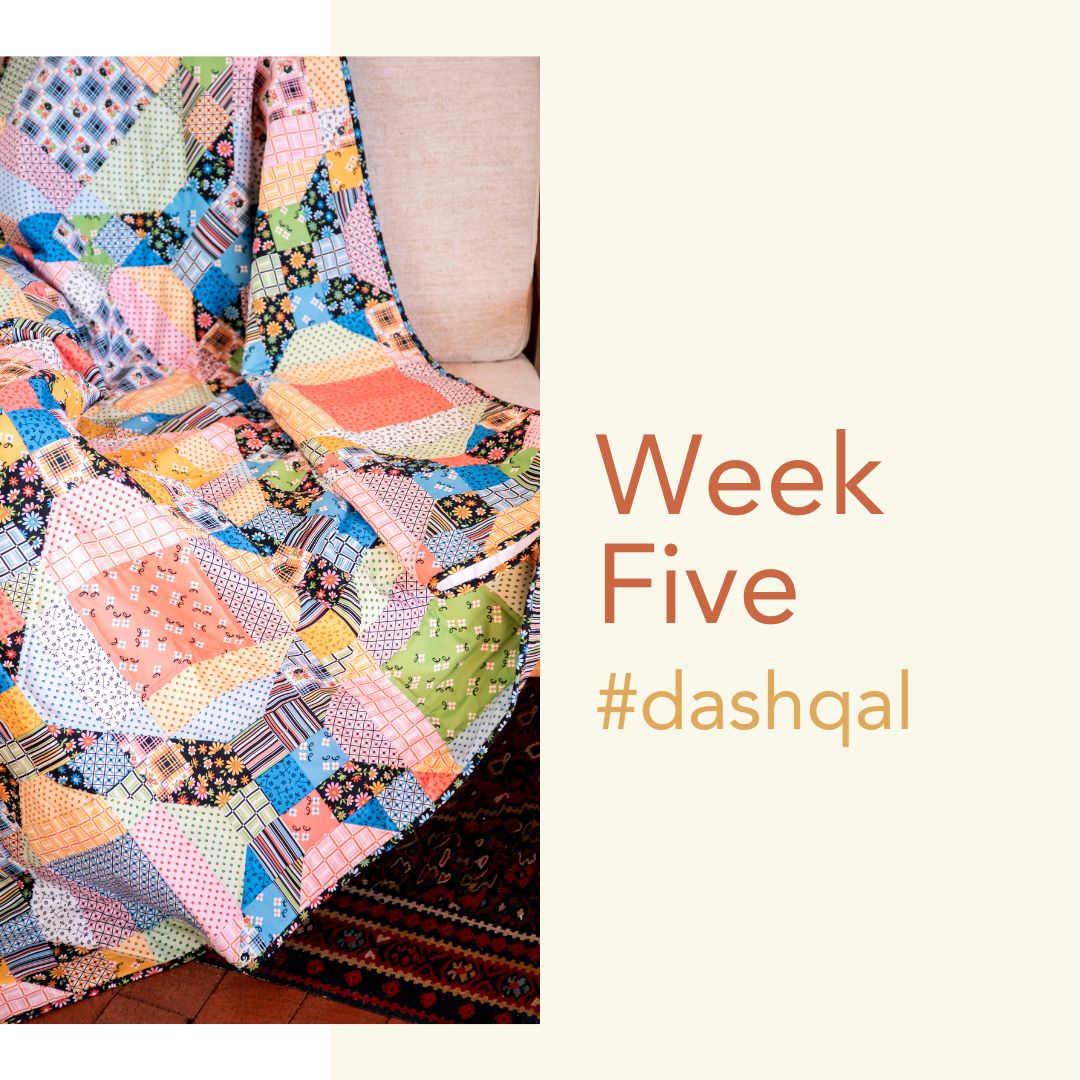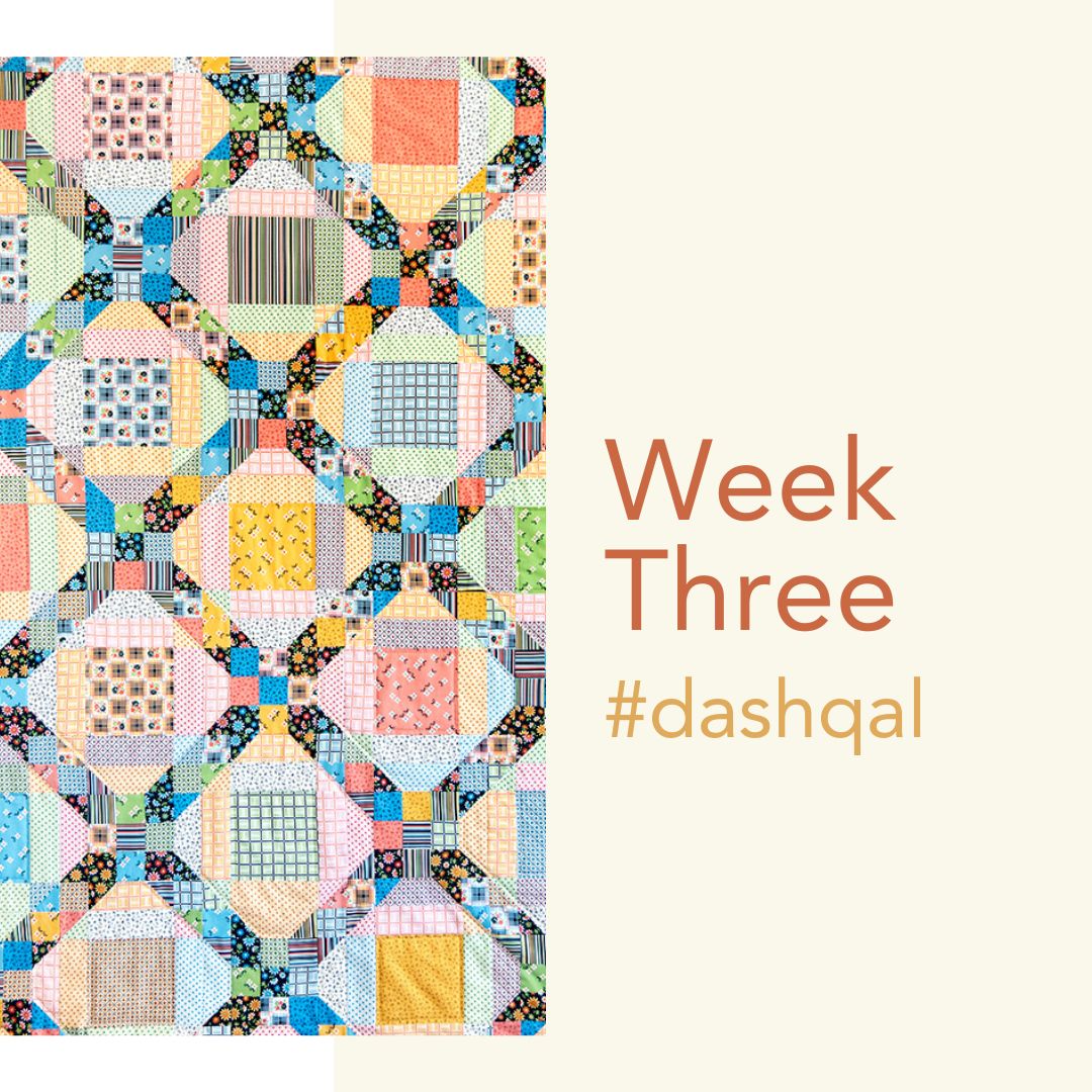 Here you will find all the links, information, and details for the Dash quiltalong. The actual quiltalong has concluded, but all the information is still available online, so you are free to create your own mini quiltalong! The entire event is divided into 5 weeks, creating a pace to make this quilt project manageable. It’s meant to grown your design skills, learn some new ways to design quilts with lots of different fabrics from your stash, and easy to enjoy!
