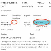 The current quiltalong for my newest quilt pattern, Dash, is in its 3rd week (and there is still time to join us if you’re interested, just visit this page). I am thrilled that I have gotten so many new followers since this quitalong began! Welcome to you all, we’re so happy to have you! I wanted to add some additional information for you in case you are ordering a PDF pattern from my shop. We are always trying to make the purchase process in our online shop as easy as possible, and hopefully this will clarify how purchasing and downloading a PDF pattern will work.
